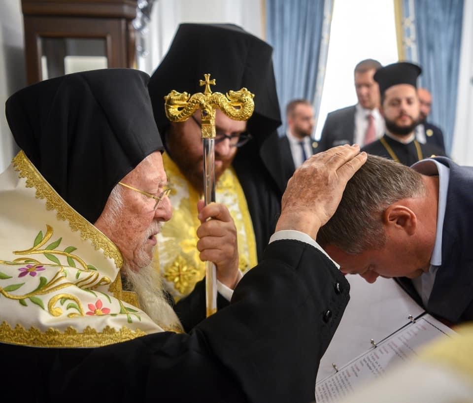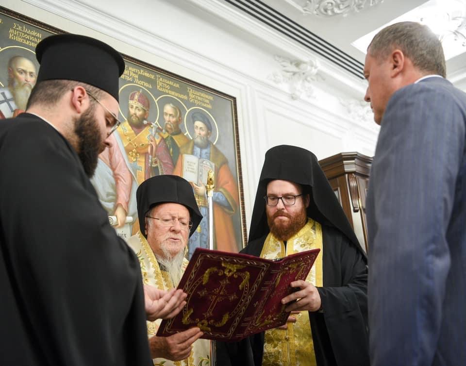 «Блаженнійший Митрополит Епіфаній звернувся з такою пропозицією, розказавши про весь той внесок, який Ви робите в розвиток Православної Церкви України і ми з радістю прийняли цю пропозицію і надали Вам почесний титул архонта Константинопольської Церкви. Ми, обидва Предстоятелі, хочемо відзначити Вас і хочемо подякувати за те, що Ви намагаєтеся створити міцне підґрунтя для цієї молодої Церкви, яка ще тільки зароджується і розвивається, і Ви якраз є серед тих людей, завдяки яким вона почала своє життя і живе», – додав Його Всесвятість.