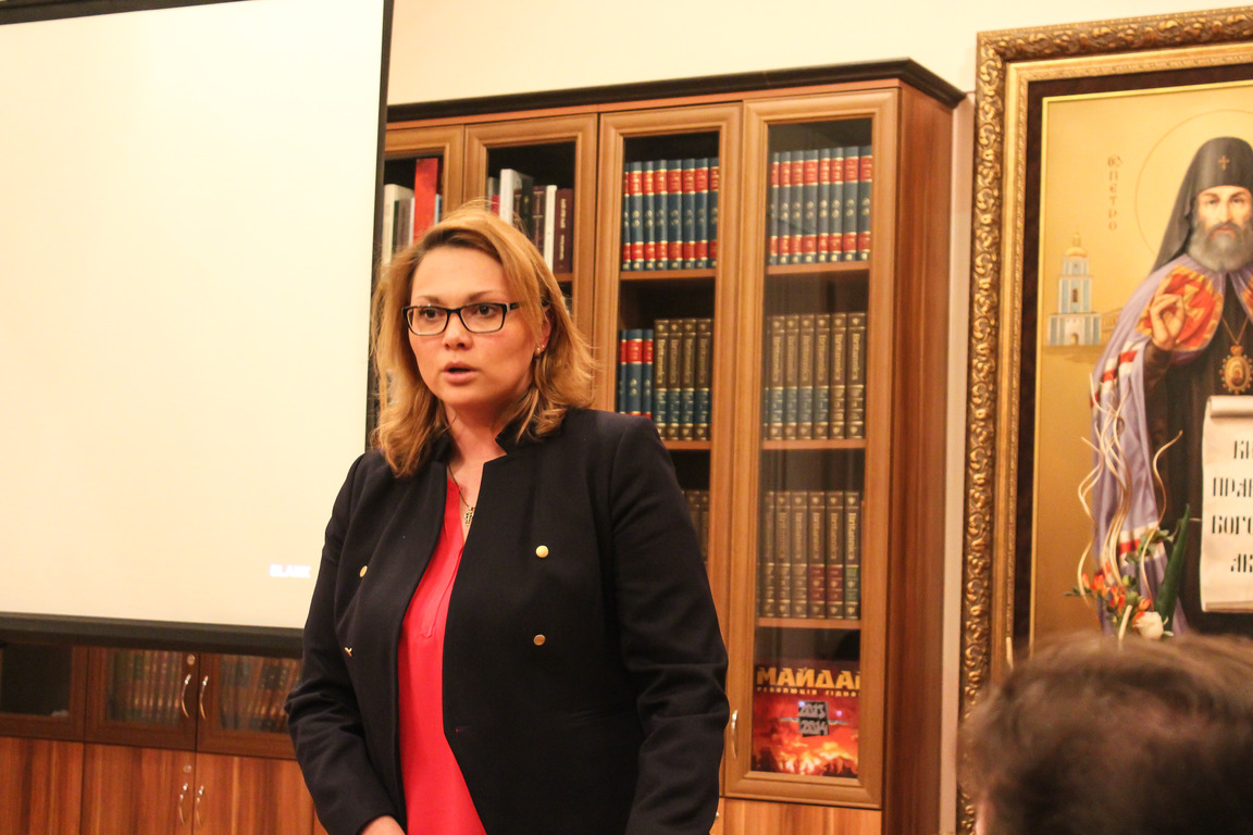 7 березня у Київській православній богословській академії(КПБА) в рамках проекту "Публічний лекторій" виступила Ксенія Володимирівна Смирнова - доктор юридичних наук, професор Інституту міжнародних відносин Київського національного університету імені Тараса Шевченка, голова науково-методичної ради ІМВ.
